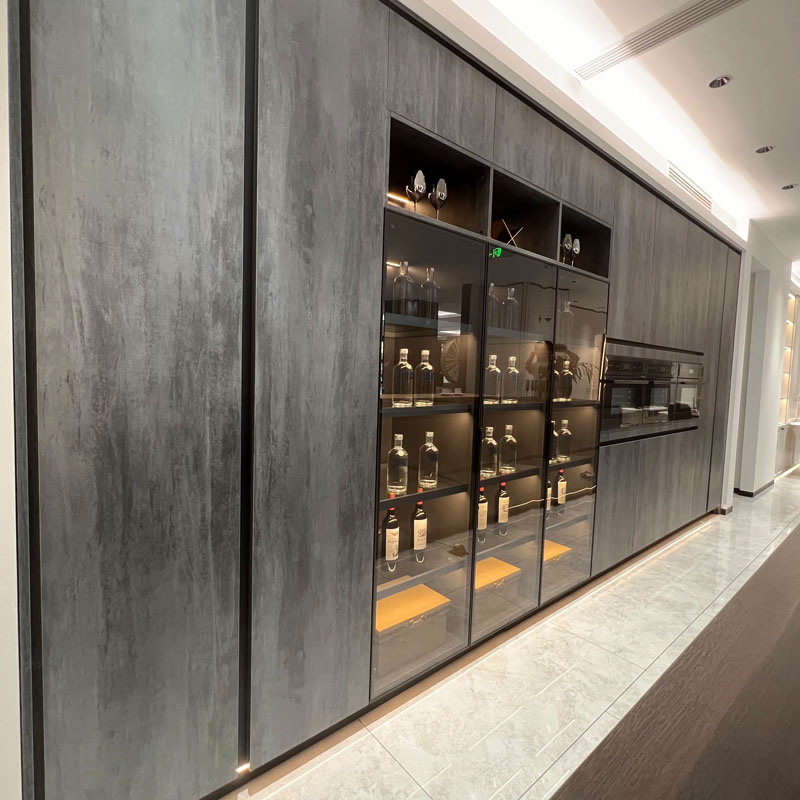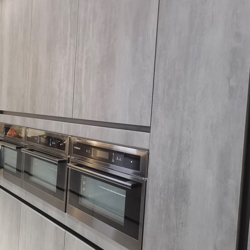 نئے انداز کے فیشن ایبل صنعتی لیمینیٹڈ کچن کیبنٹ جس میں پرانے علاج جیسے راک ویدرنگ، ٹچ احساس ہموار اور معیاری ہے، ایلومینیم فریم کے ساتھ شیشے کے دروازے کے پینل سے میل کھاتا ہے، باورچی خانے کی سجاوٹ کو اعلیٰ احساس دیتا ہے۔ مواد واٹر پروف آسان صاف ہیں اور انداز آسان نہیں ہے۔