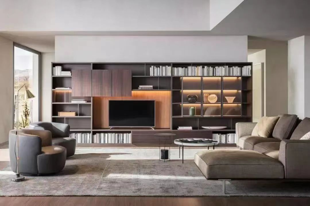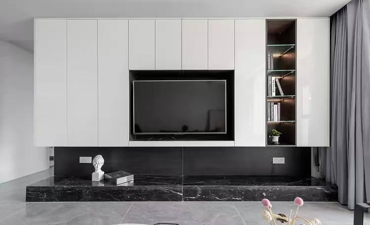 مرکز کے طور پر ٹی وی کابینہ کے ساتھ ، آس پاس کا علاقہ کتابی الماری یا اسٹوریج کابینہ کے طور پر ڈیزائن کیا جاسکتا ہے۔ اگر یہ علاقہ کافی بڑا ہے تو ، آپ شراب کی کابینہ شامل کرسکتے ہیں ، ایک مربوط ڈیزائن تشکیل دے سکتے ہیں جو ہم آہنگی اور دولت کو بڑھاتا ہے۔